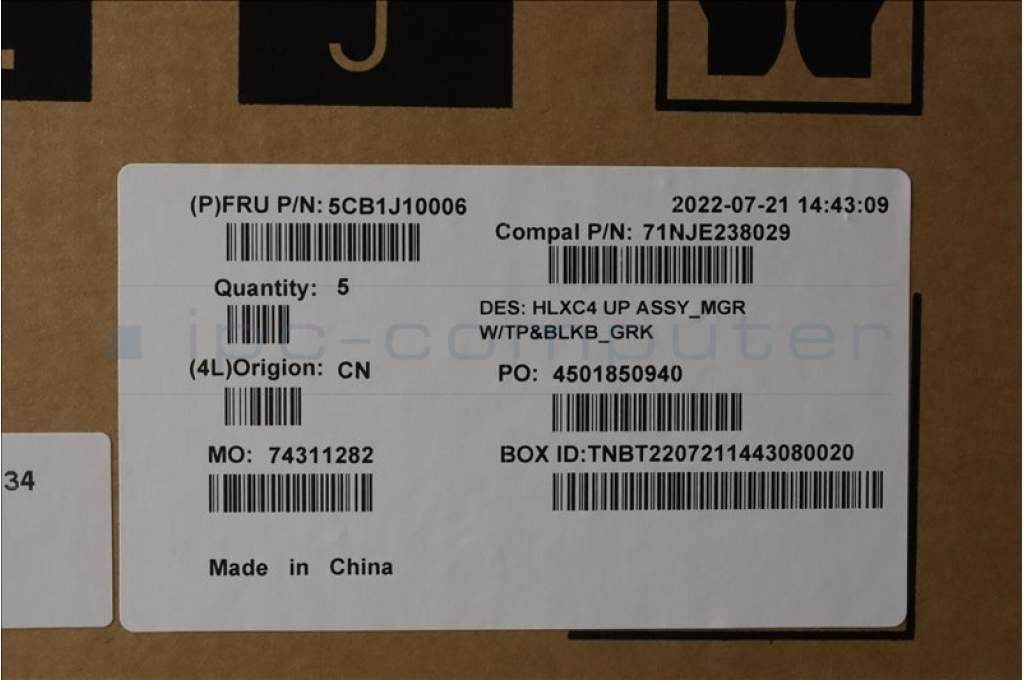 Lenovo 5CB1J10006 COVER Upper Case ASM_GRE C 21DM BLKB N