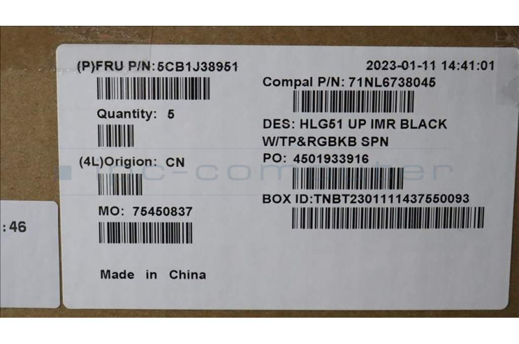Lenovo 5CB1J38951 COVER UpperCase ASM_SPA C82SCRGB BLA