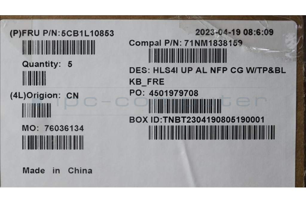 Lenovo 5CB1L10853 C-Cover with keyboard, French, Cloud Grey, Backlight, Non-Fingerprint, US