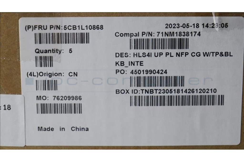 Lenovo 5CB1L10868 COVER UpCase_EUROENG C82XD NFP CG BL PL