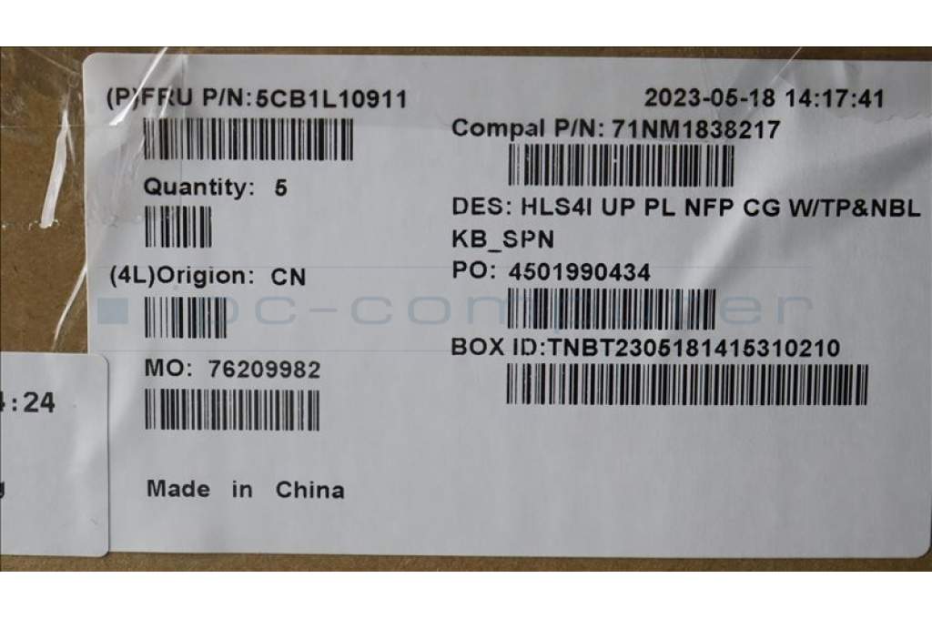 Lenovo 5CB1L10911 COVER UpperCase_SPA C82XD NFP CG NBL PL