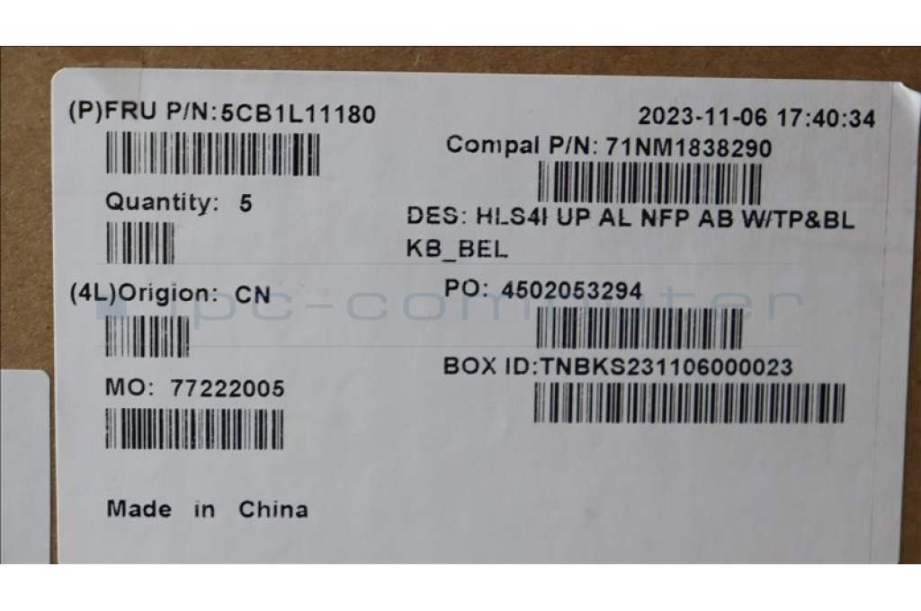 Lenovo 5CB1L11180 COVER UpperCase_BEL C82XD NFP AB BL AL