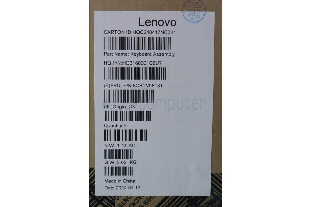 Lenovo 5CB1N95181 COVER UpperCaseASM EURO ENG H83DL NFP SG
