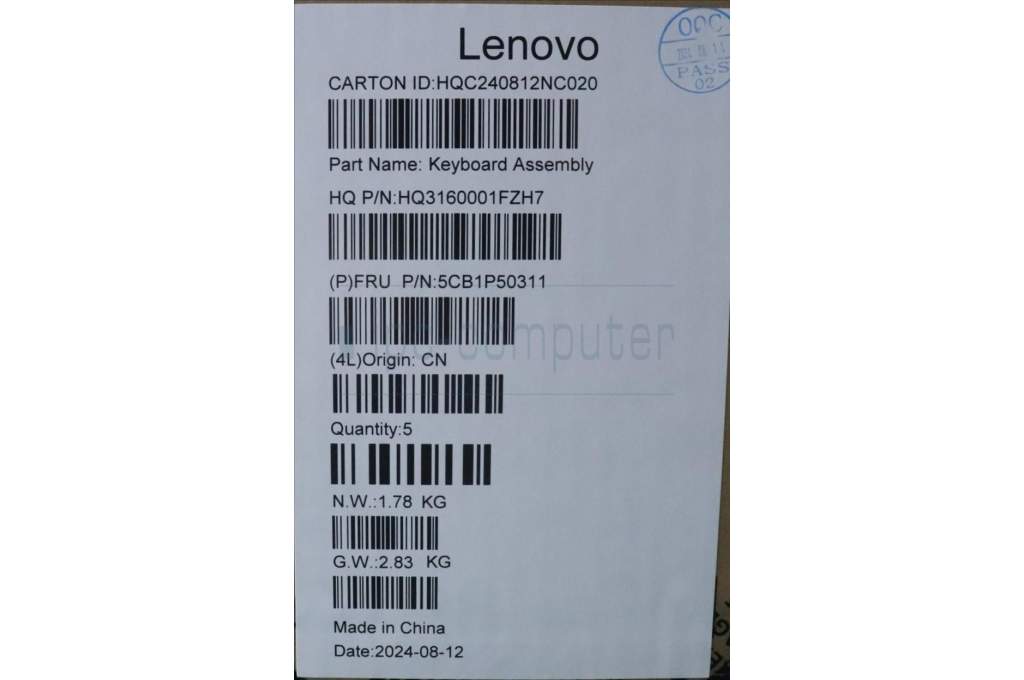 Lenovo 5CB1P50311 COVER UpperCaseASM KOR H83E2 TT PST DIS