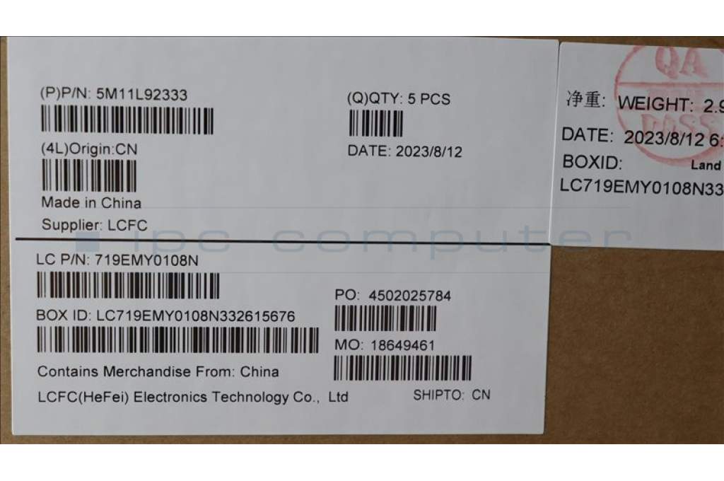 Lenovo 5M11L92333 MECH_ASM FRU KB CCV TC (CHY) US BK