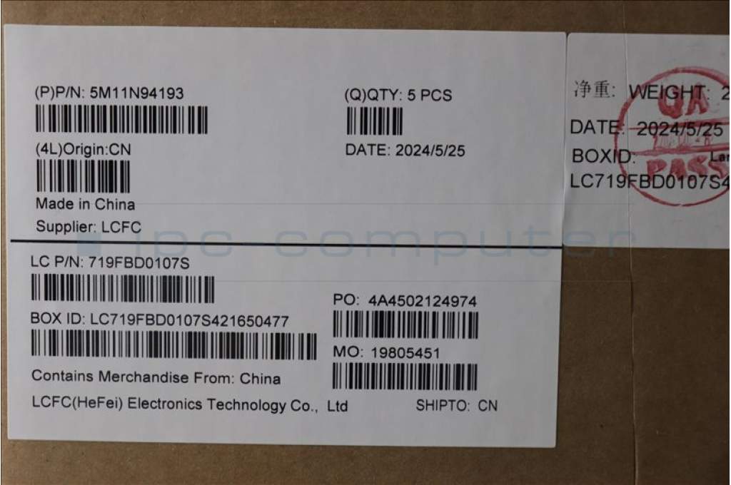 Lenovo 5M11N94193 MECH_ASM FRU KB HBW BL(CHY)US Bk