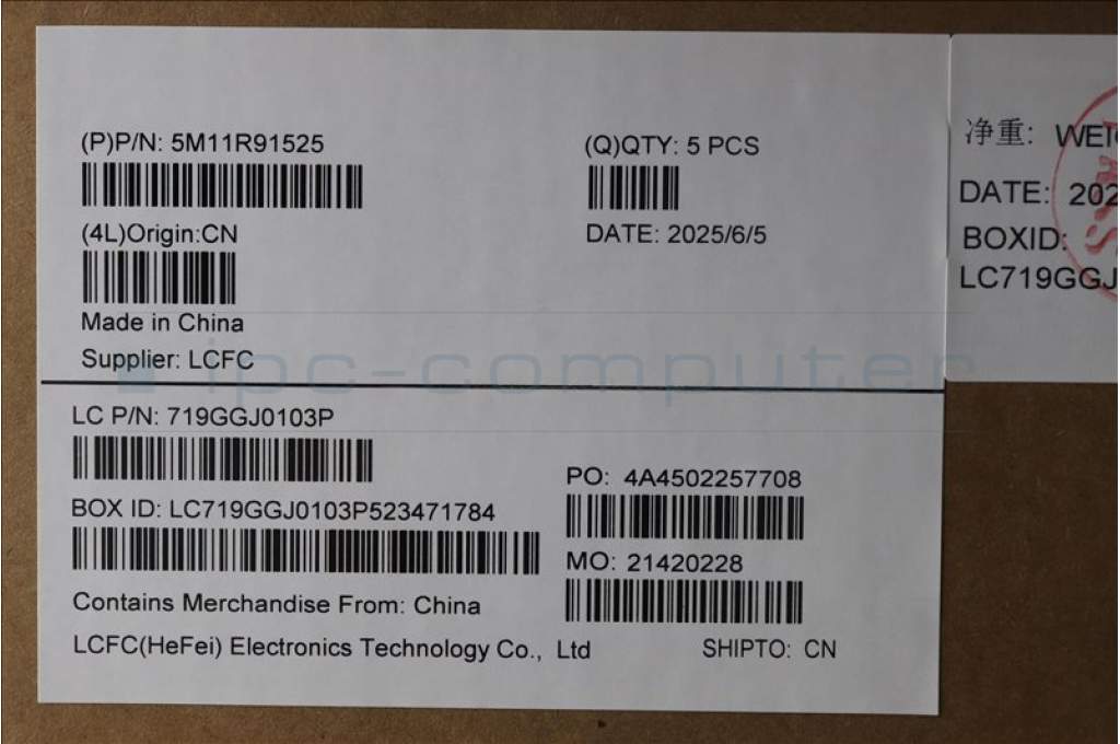 Lenovo 5M11R91525 MECH_ASM BL KB GY FPR WW POR CHY